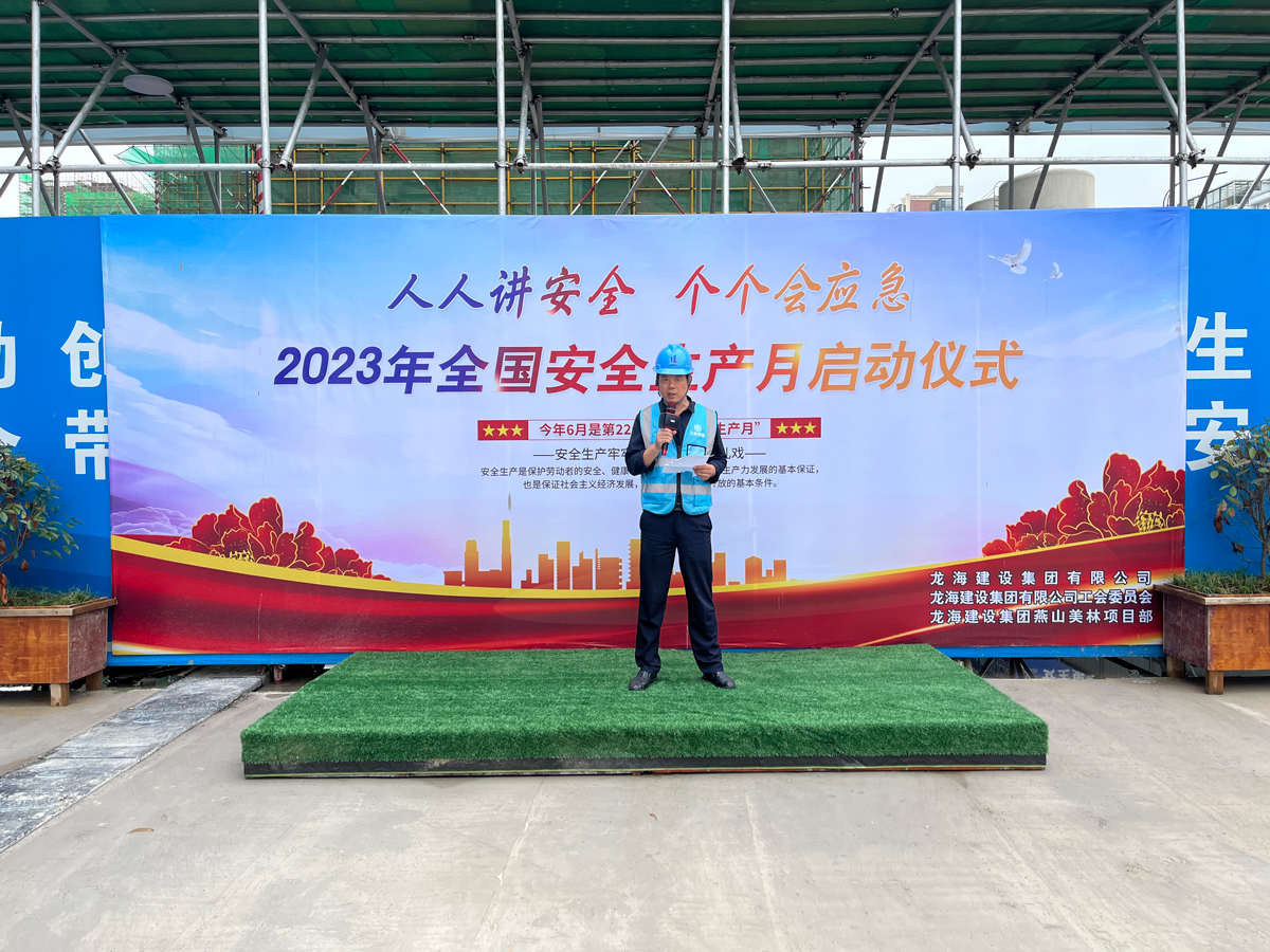 活動(dòng)在燕山美林項(xiàng)目現(xiàn)場舉行,常務(wù)副總王龍海啟動(dòng)安全生產(chǎn)月活動(dòng),并做了動(dòng)員講話。他表示,要以扎實(shí)有效的舉措,規(guī)范管理行為和作業(yè)行為,進(jìn)一步完善安全生產(chǎn)責(zé)任體系,全力保障項(xiàng)目安全生產(chǎn)向好向快發(fā)展。同時(shí)提出三點(diǎn)要求:一要堅(jiān)持人民至上、生命至上,進(jìn)一步增強(qiáng)安全意識(shí),保證安全生產(chǎn);二要精心組織“安全生產(chǎn)月”宣傳活動(dòng),切實(shí)把安全知識(shí)送到基層一線;三要嚴(yán)格執(zhí)行各項(xiàng)制度,完善各項(xiàng)措施,堅(jiān)決杜絕事故發(fā)生。